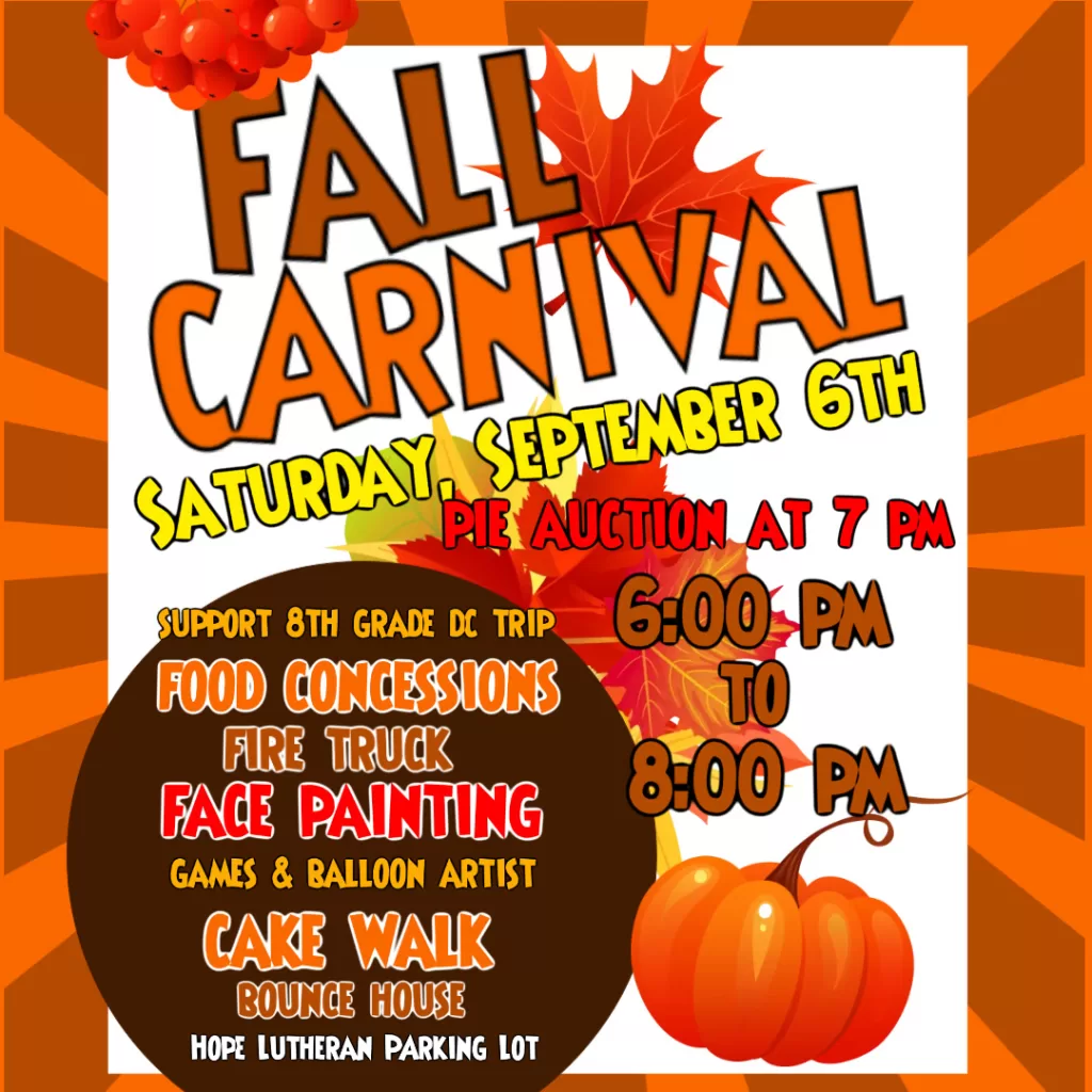 - September 6th – Fall Carnival
